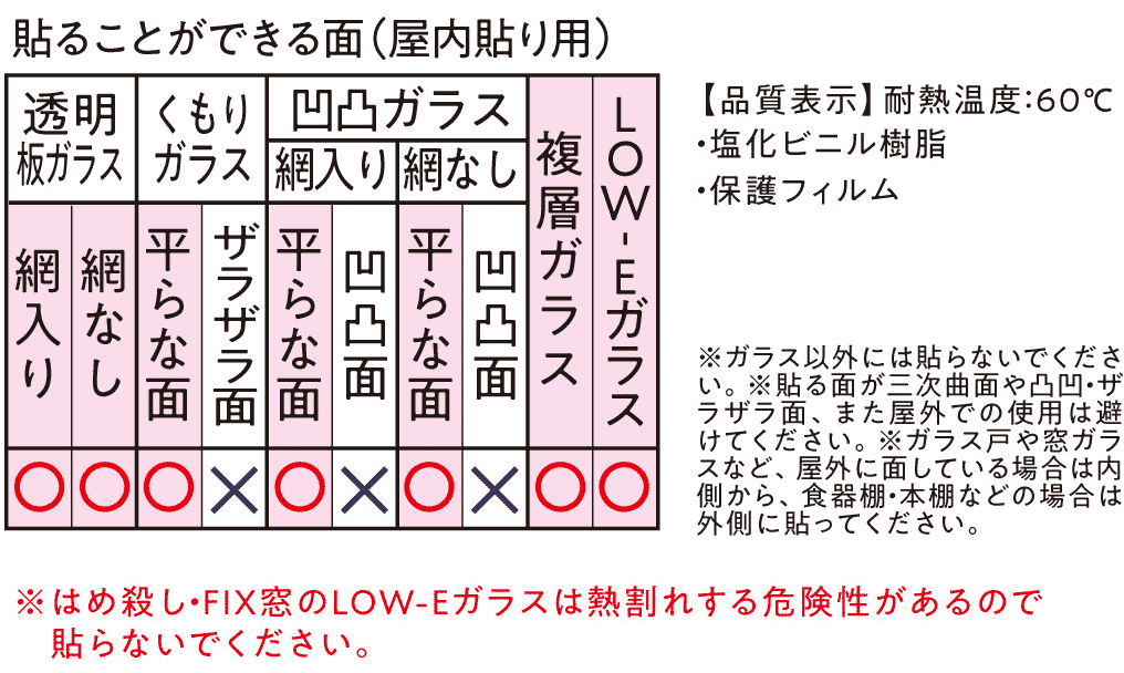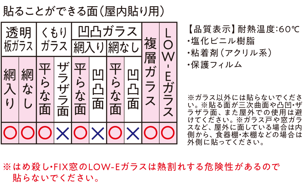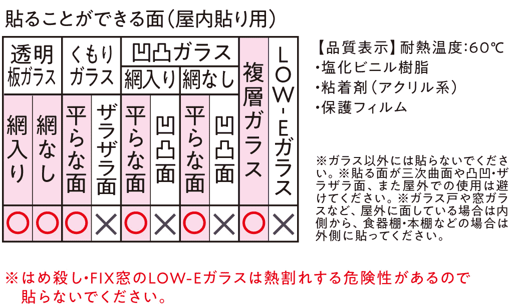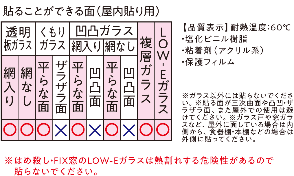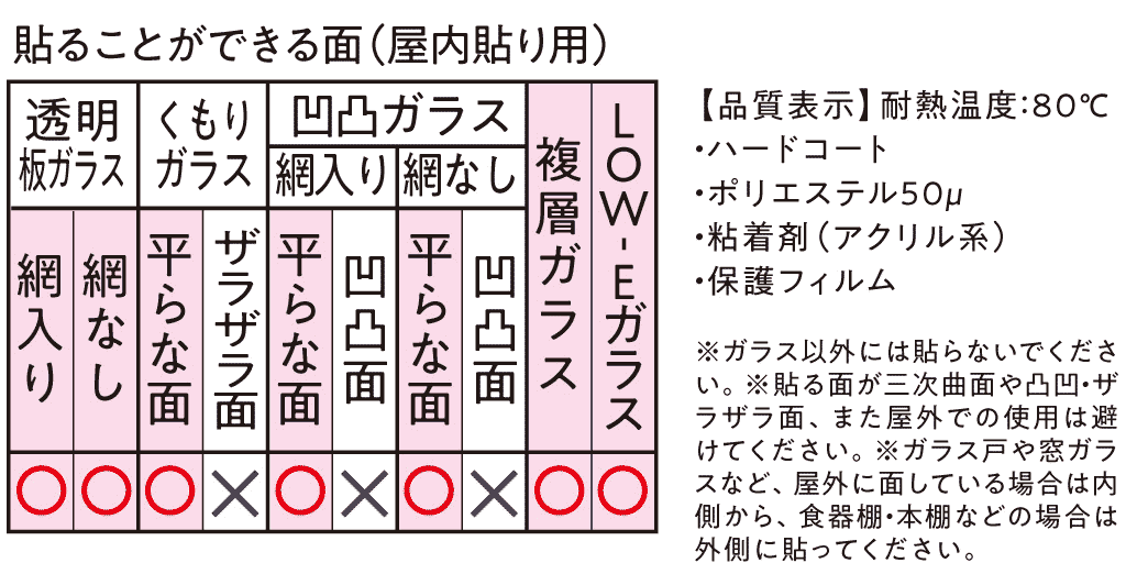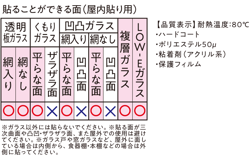 特殊粘着素材を使った凸凹ガラス専用の防災フィルム。貼っても凸凹ガラスの目かくし効果はそのまま。そのまま貼れるシールタイプです。UV99%カット。